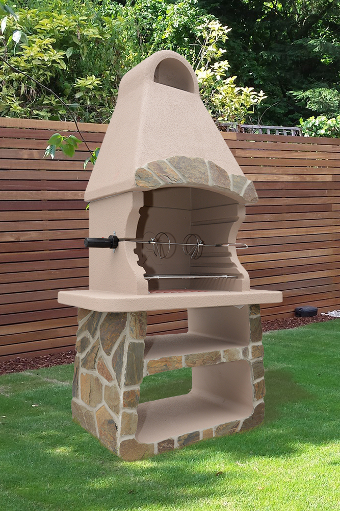 V ceně krbu je nerezový rošt, grilovací jehla a motorek.